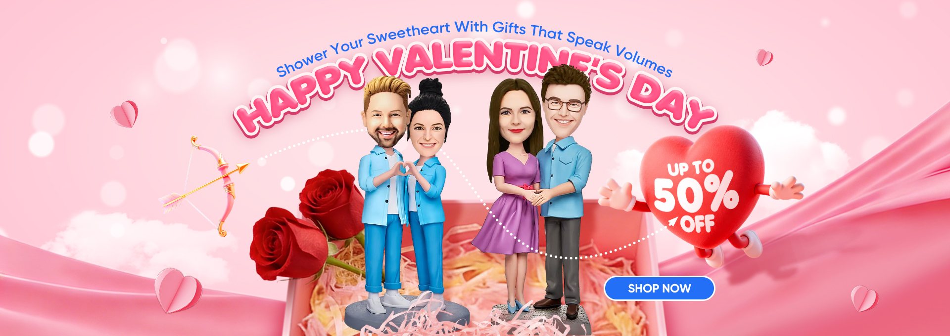 Tacit Couple Custom Bobblehead With Engraved Text Gift for Valentine's Day -