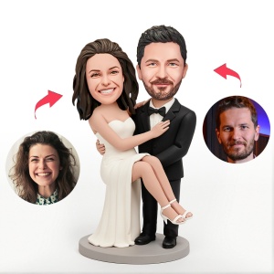 Custom Couple Man in Suit Carrying a Woman in a White Dress in His Arms Custom Bobblehead With Engraved Text Gift for Valentine's Day -