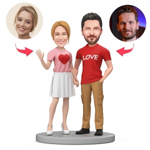 Couple Holding Red Hearts With Messages Of Love Custom Bobblehead With Engraved Text Gift for Valentine's Day -