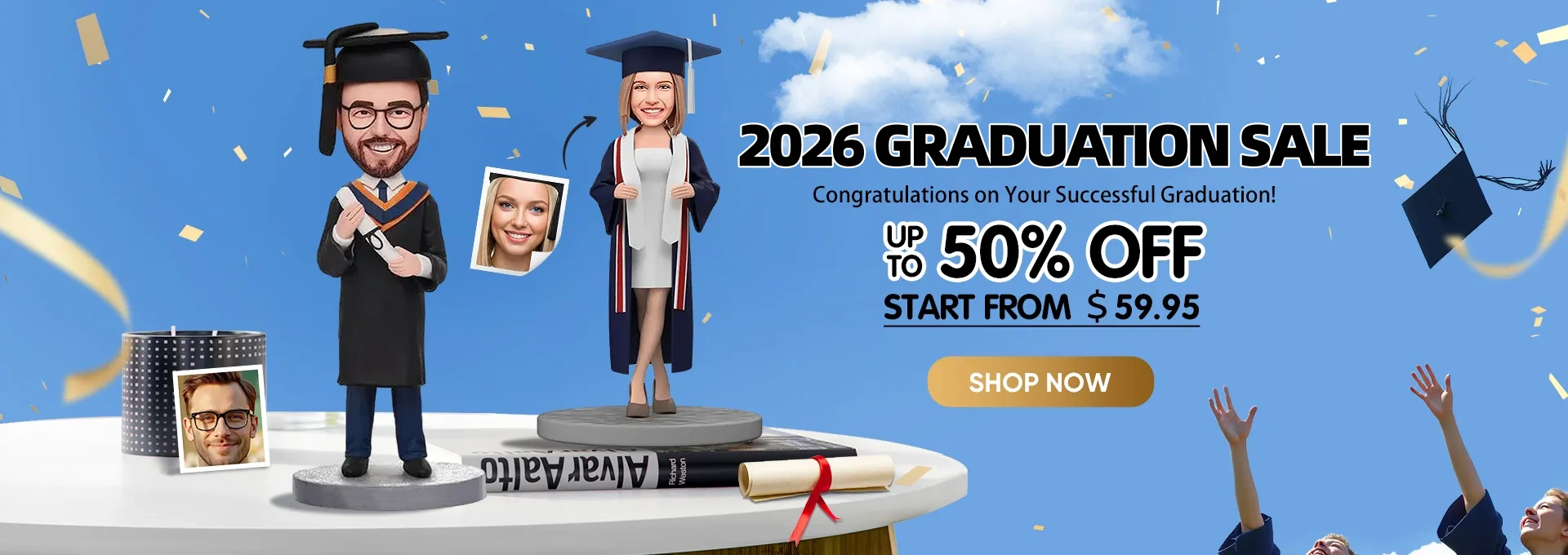 Valentine's Day Gifts Couple Blue Outfit Sitting on 2026 Couple Custom Bobblehead With Engraved Text Valentine's Day Gift -