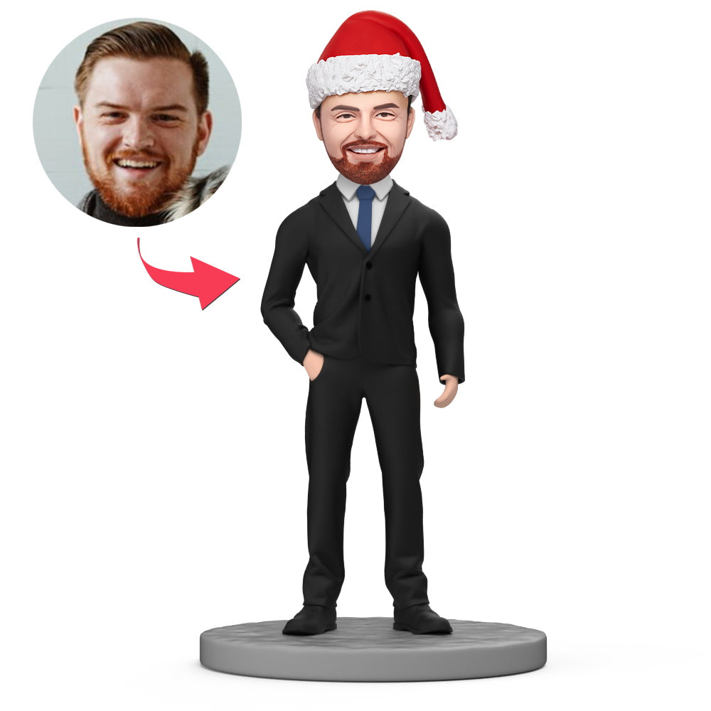 Business Man Wear Christmas Hat Custom Bobblehead with Engraved Text
