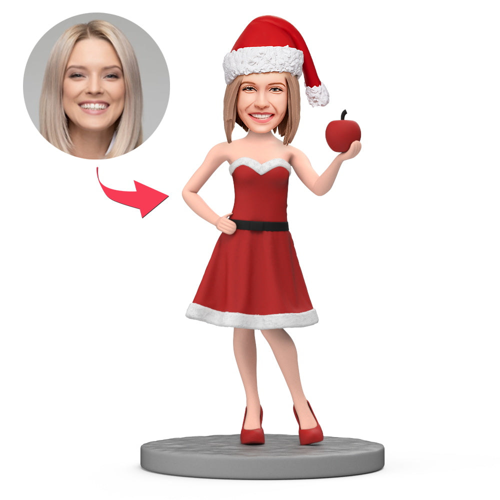 Christmas Gift Woman with Apple Custom Bobblehead with Engraved Text