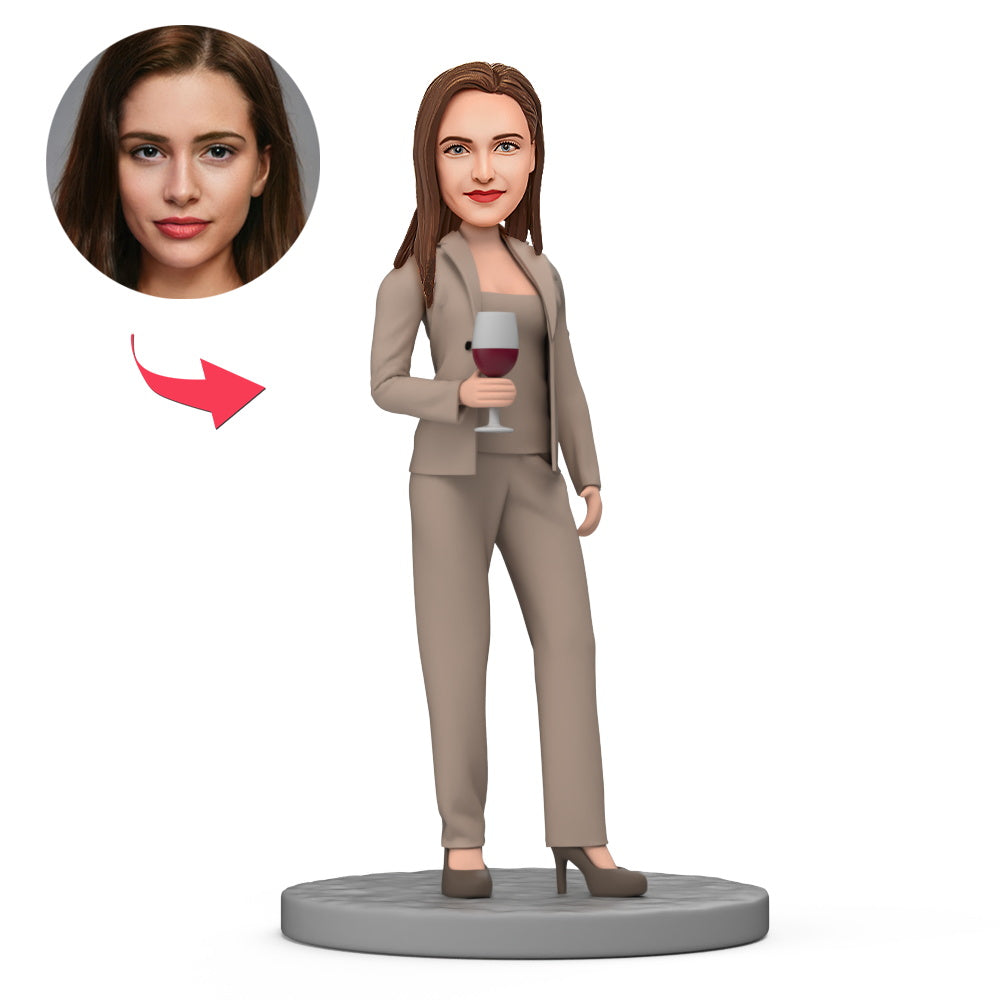 Business Female Hold Wine Custom Bobblehead with Engraved Text