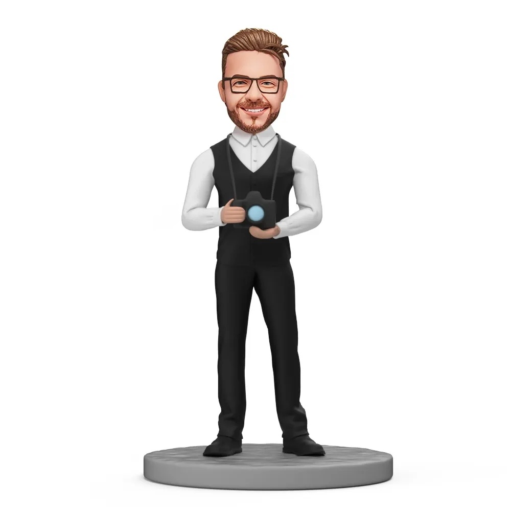 Male Photographer Hold Camera Custom Bobblehead with Engraved Text