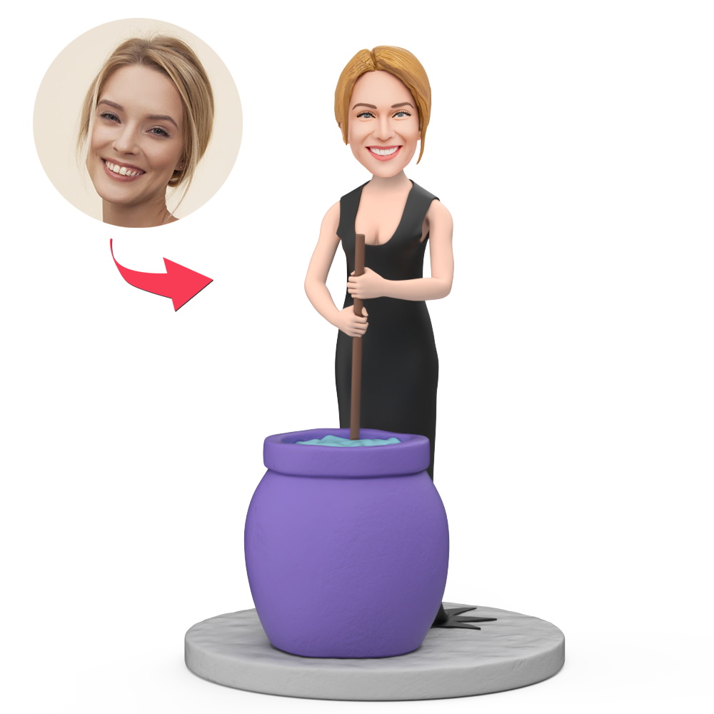 Female Witch Making Magic Potions Custom Bobblehead With Engraved Text Gift For Halloween