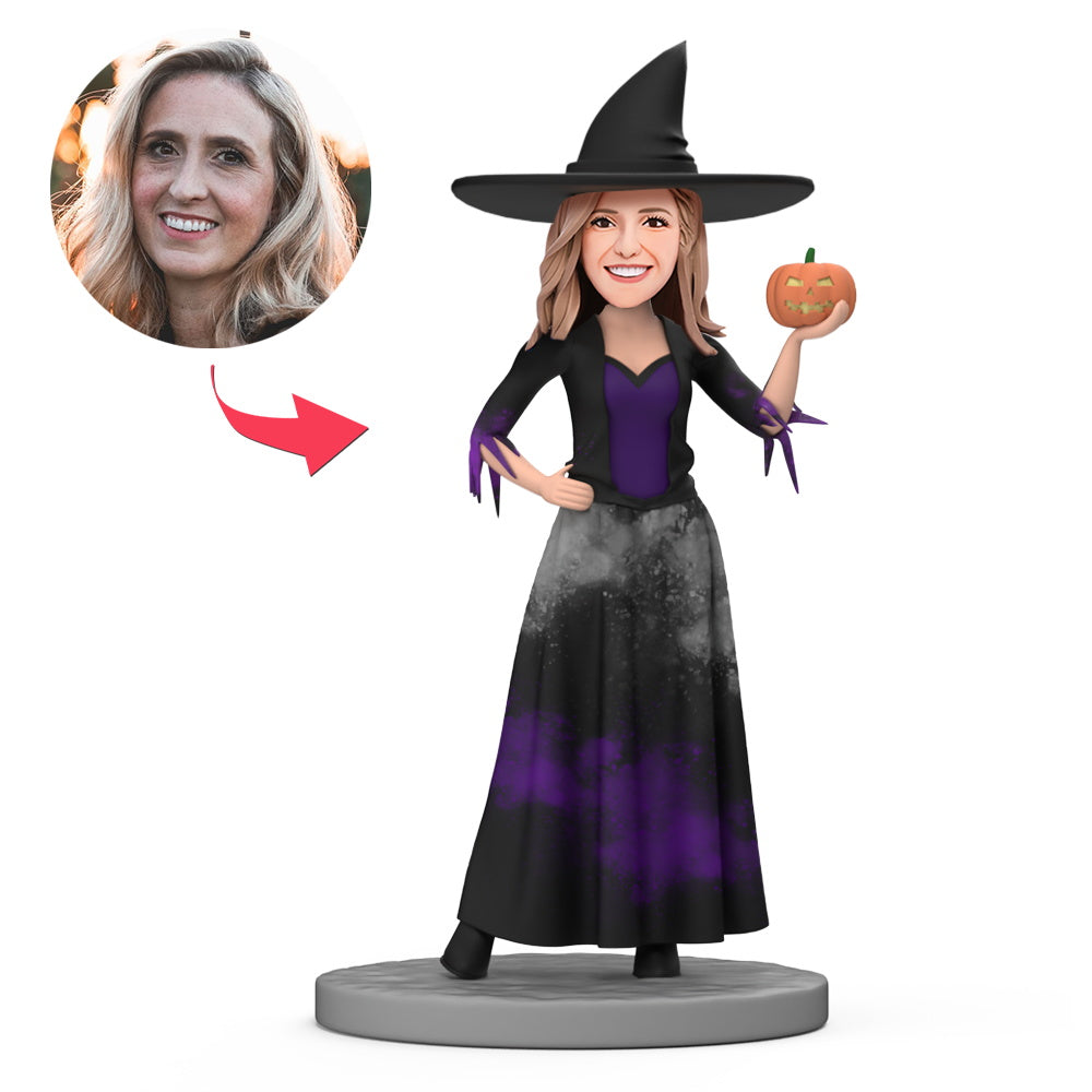Halloween Witch Hold Pumpkin Custom Bobblehead with Engraved Text