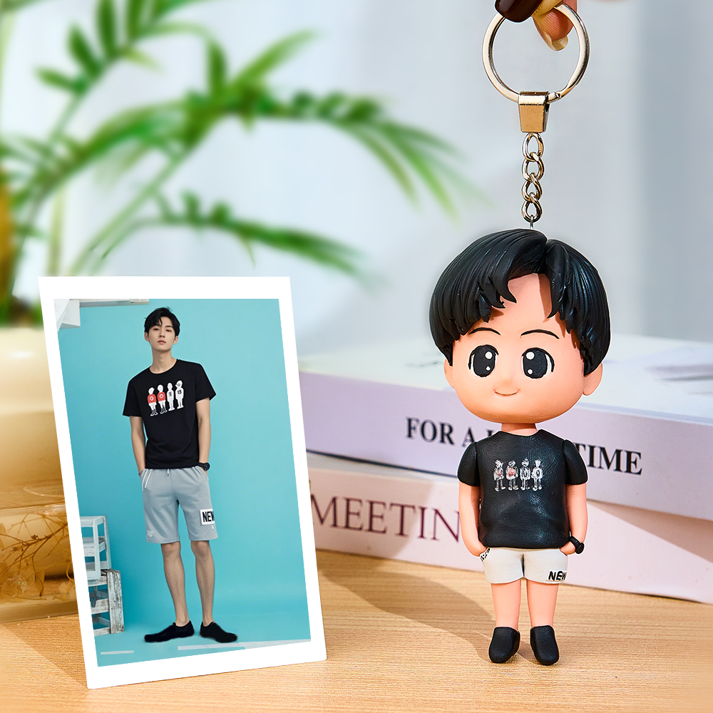 Teenager Custom Bobblehead With Engraved Text Key Chain