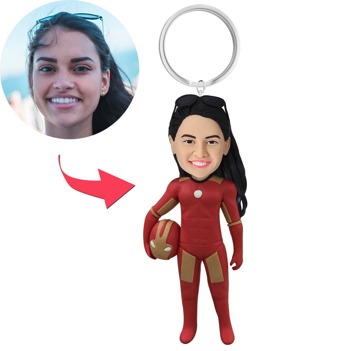 Superhero Woman Custom Bobblehead With Engraved Text Key Chain