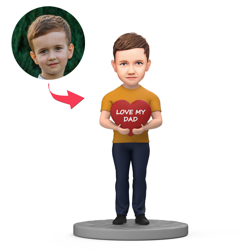 Boy Hold Heart on Chest LOVE MY DAD Custom Bobblehead with Engraved Text