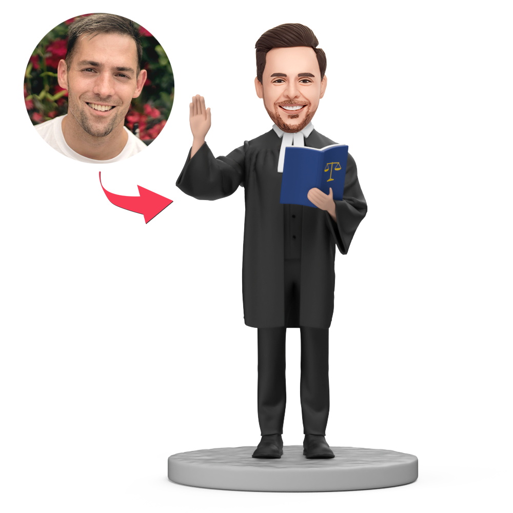 Male Lawyer Taking an Oath Custom Bobblehead with Engraved Text