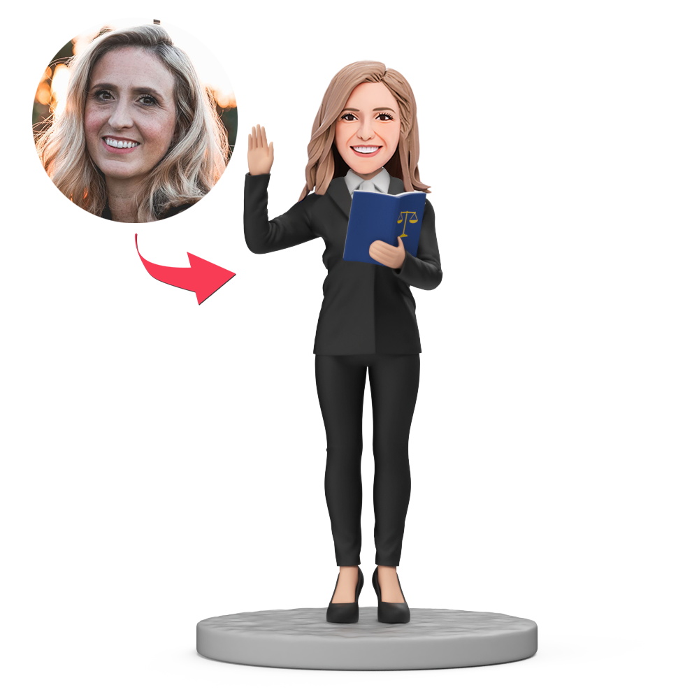 Female Lawyer Wear Black Suit Hold Book in Hand Custom Bobblehead with Engraved Text