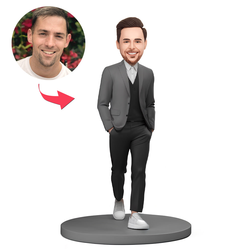 Custom Bobblehead Stylish Man in Gray Casual Suit