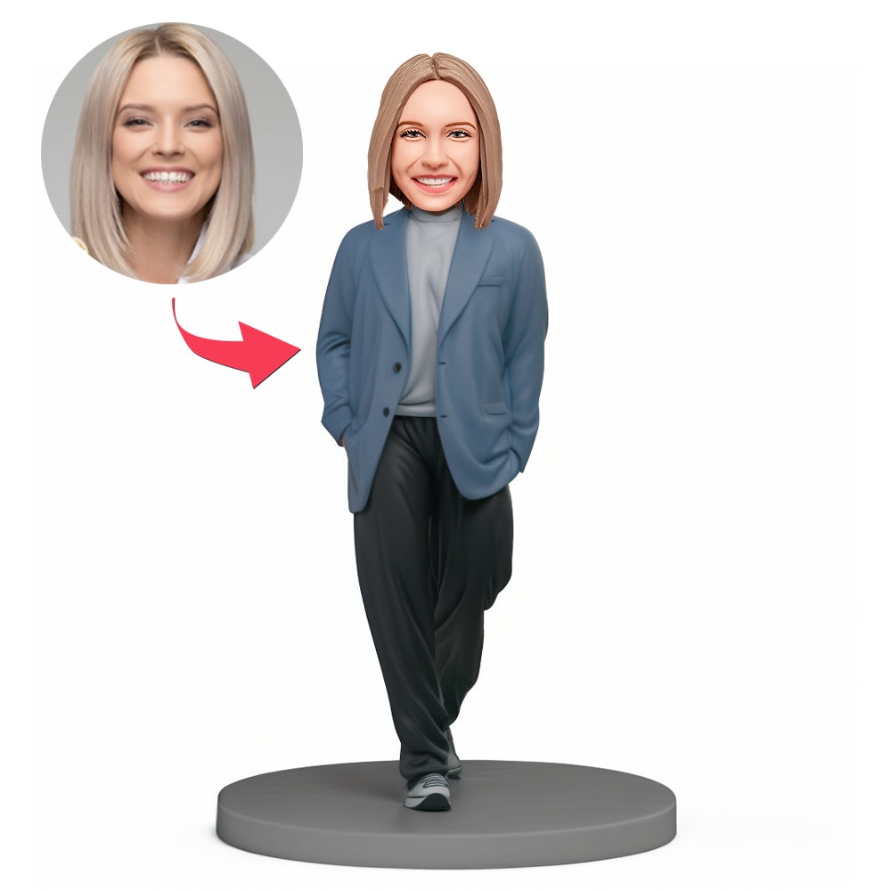 Custom Bobblehead Young Lady Wearing Fashionable Autumn Clothes