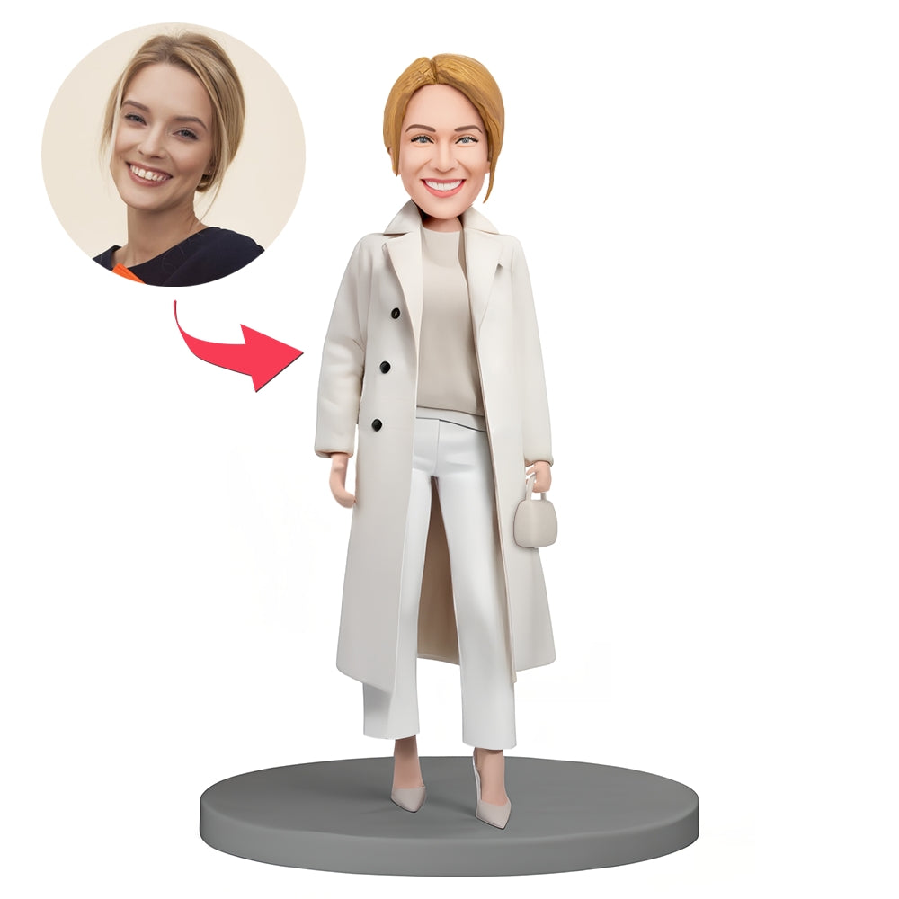 Custom Bobblehead Beautiful Woman Wearing Fashionable White Suit