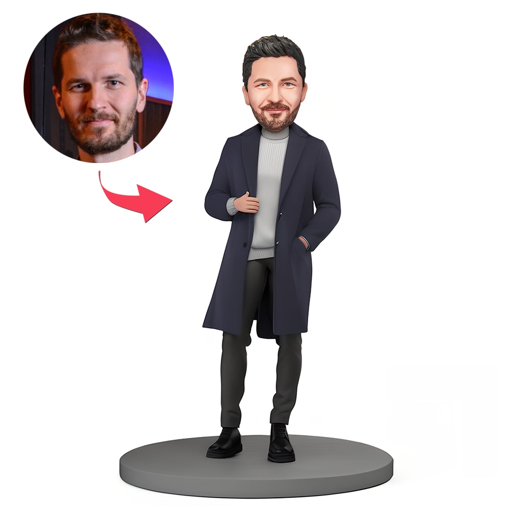 Custom Bobblehead Modern Man in Dark Blue Coat