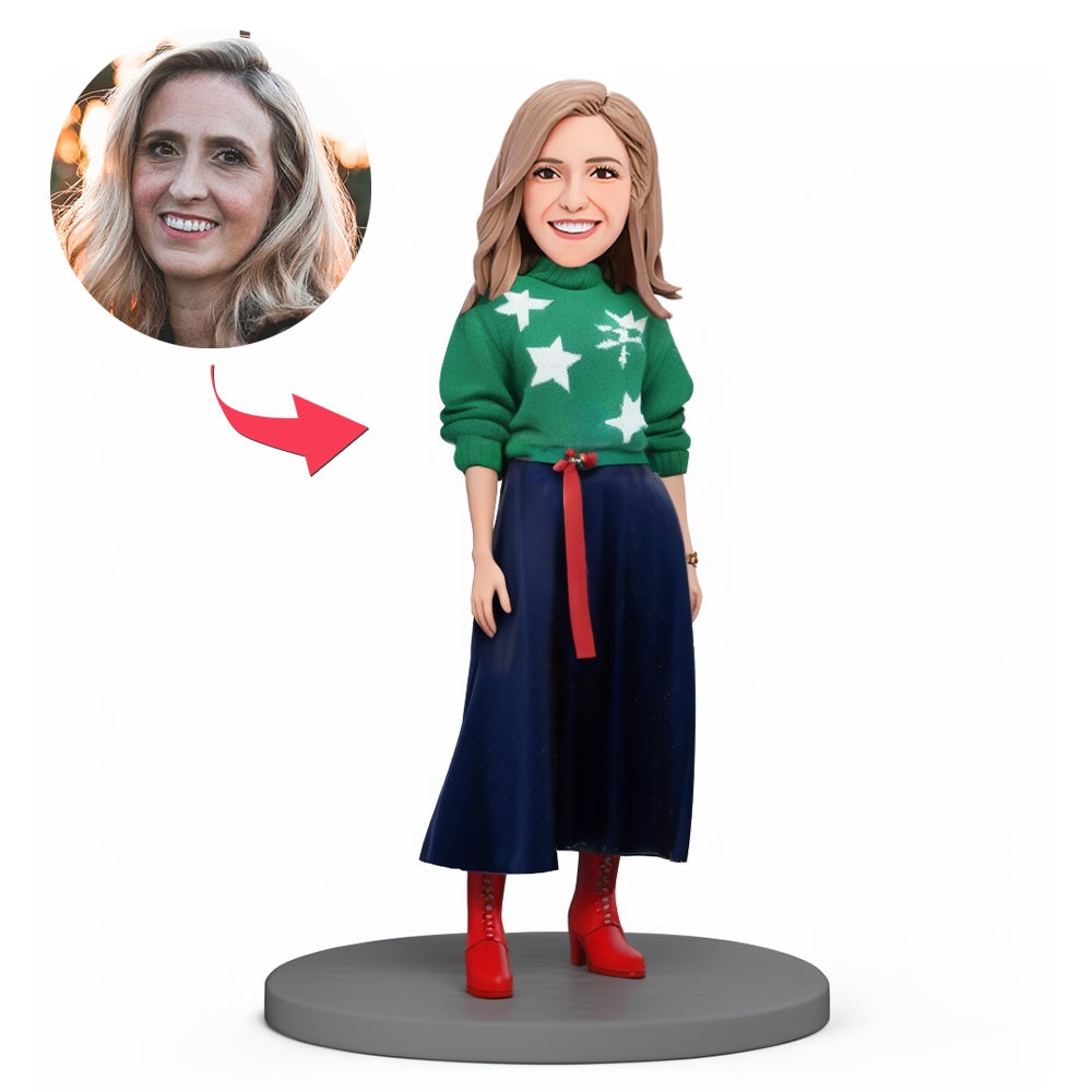 Christmas Gift for Her Custom Bobble Head Stylish Woman Wearing Christmas Sweater