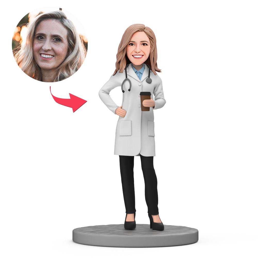 Female Doctor Hold Coffee Custom Bobblehead with Engraved Text