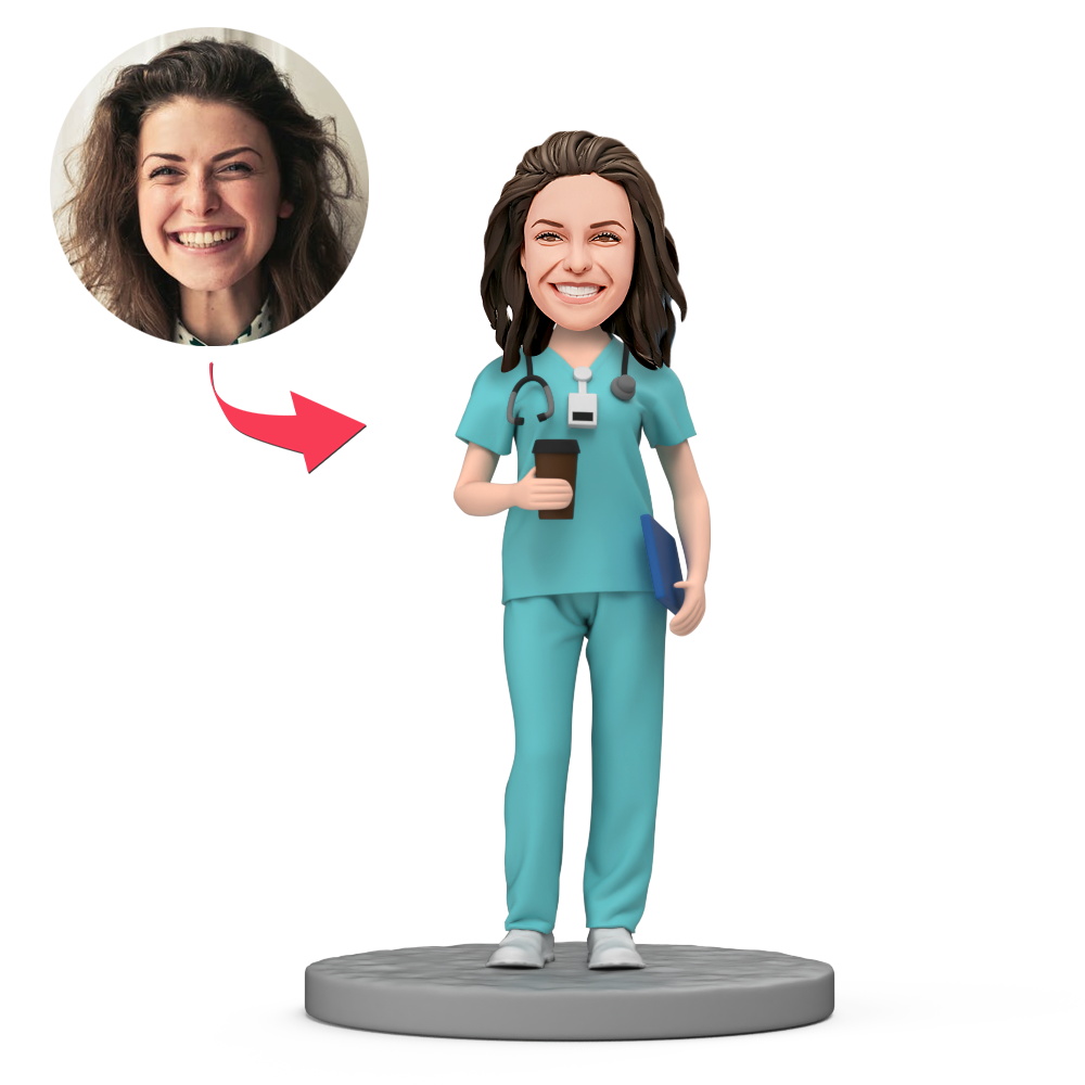 Nurse Hold Coffee Custom Bobblehead with Engraved Text