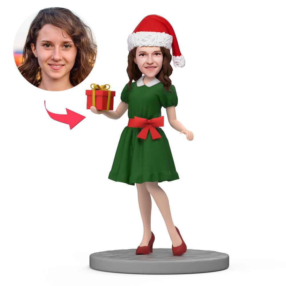 Women Wear Christmas Clothes Custom Bobblehead with Engraved Text