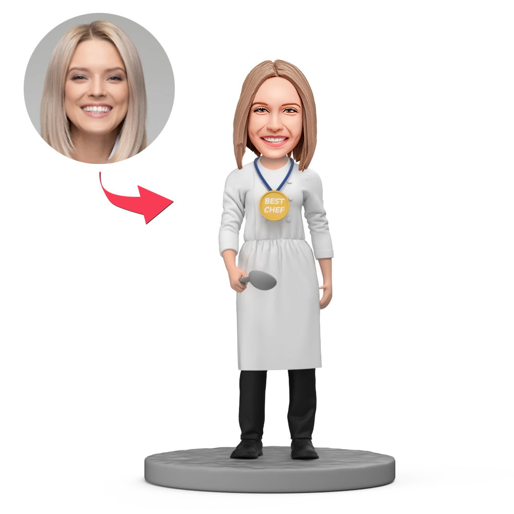 Female Wear Best Chef Gold Medal Custom Bobblehead with Engraved Text
