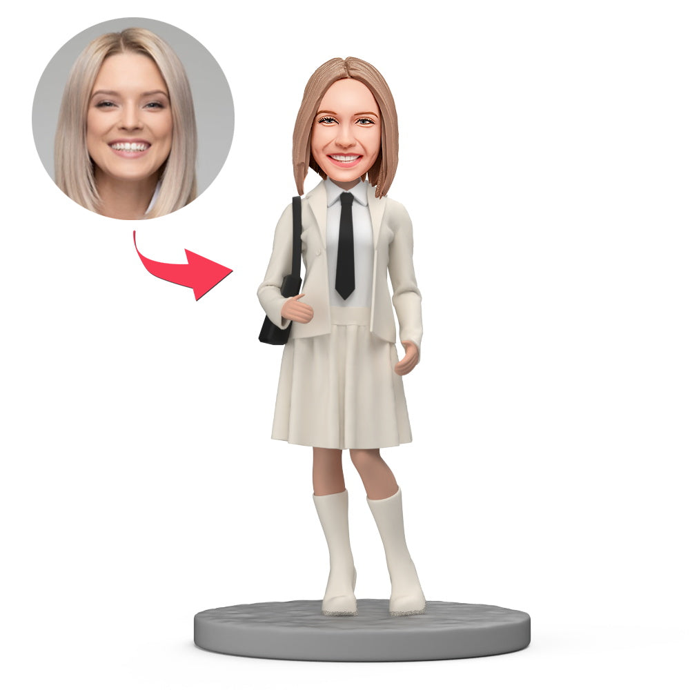 Female Student Wear White Suit Custom Bobblehead with Engraved Text