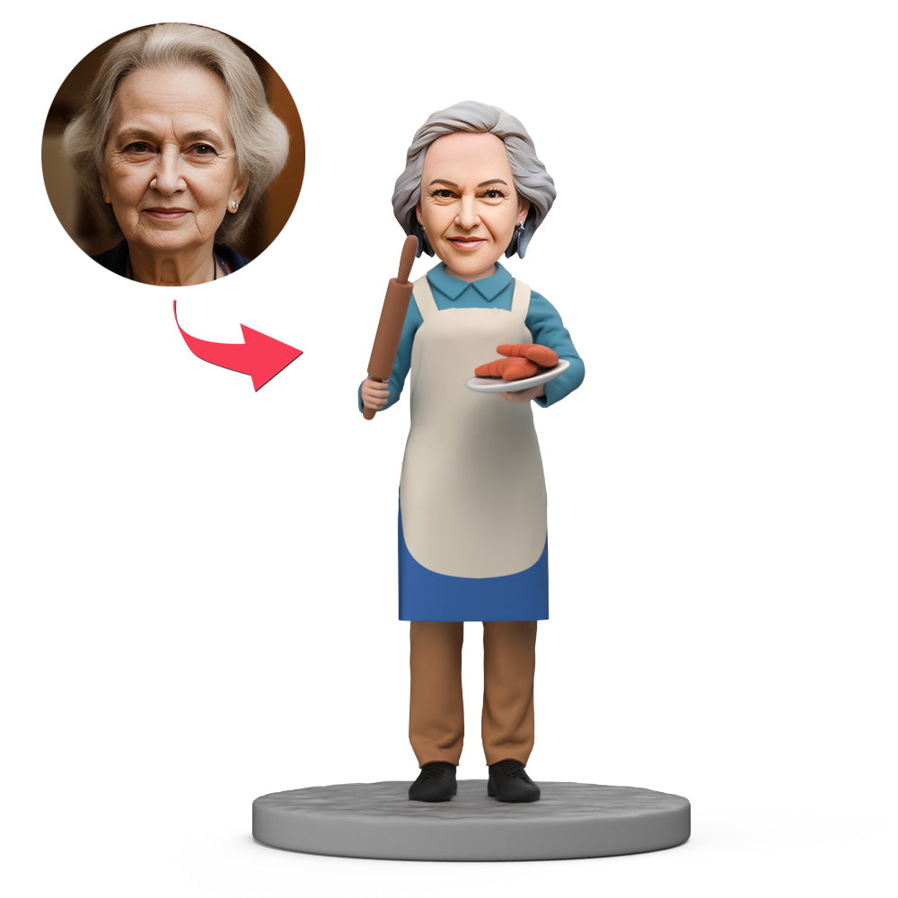 Grandma Cook in Apron Custom Bobblehead with Engraved Text