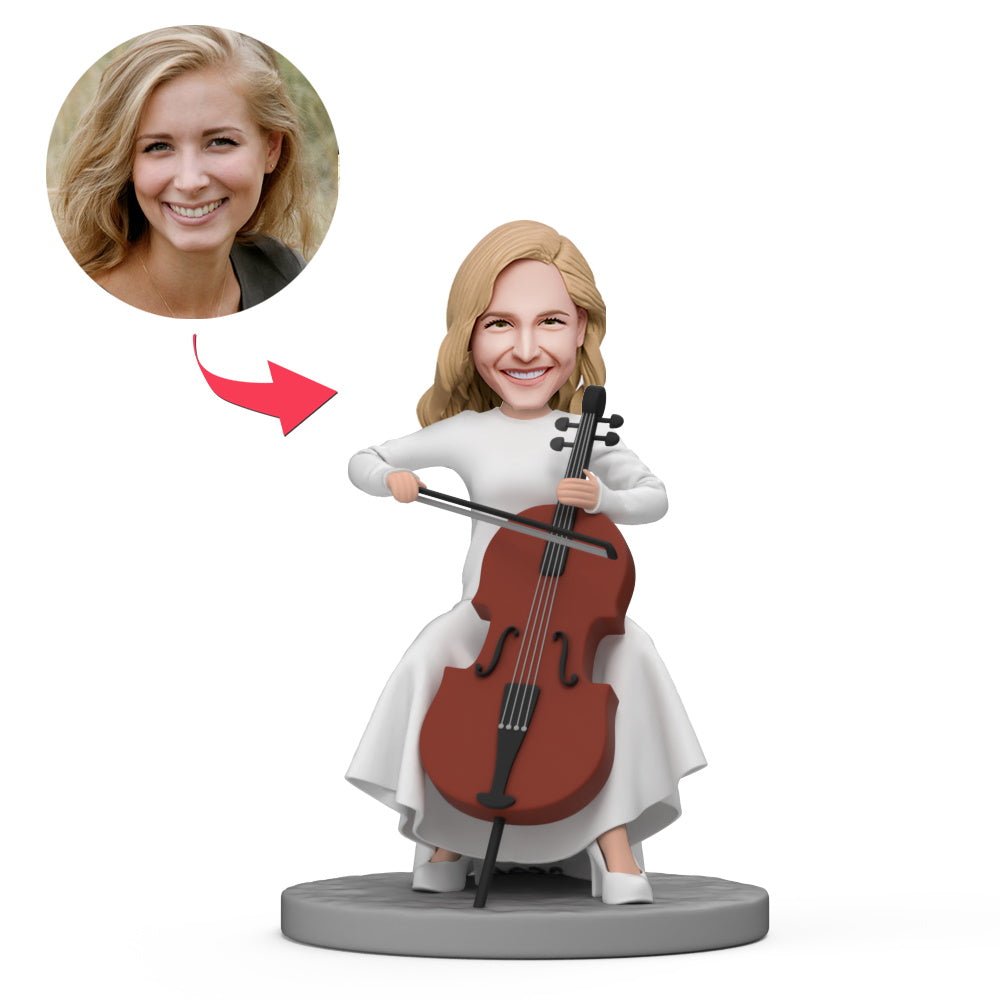 Cello Lady Wear White Dress Custom Bobblehead with Engraved Text