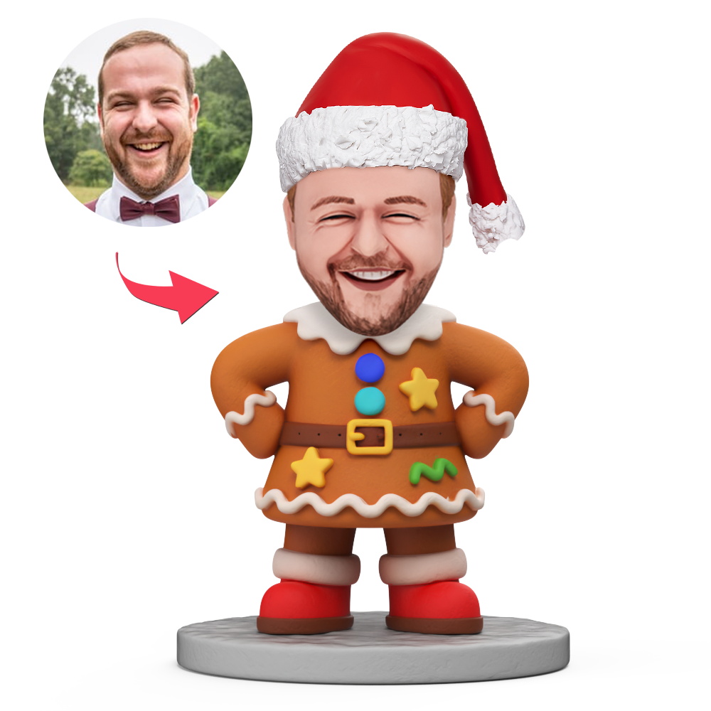 Gingerbread Man Costume with Santa Hat Custom Bobbleheads With Engraved Text Gift for Christmas