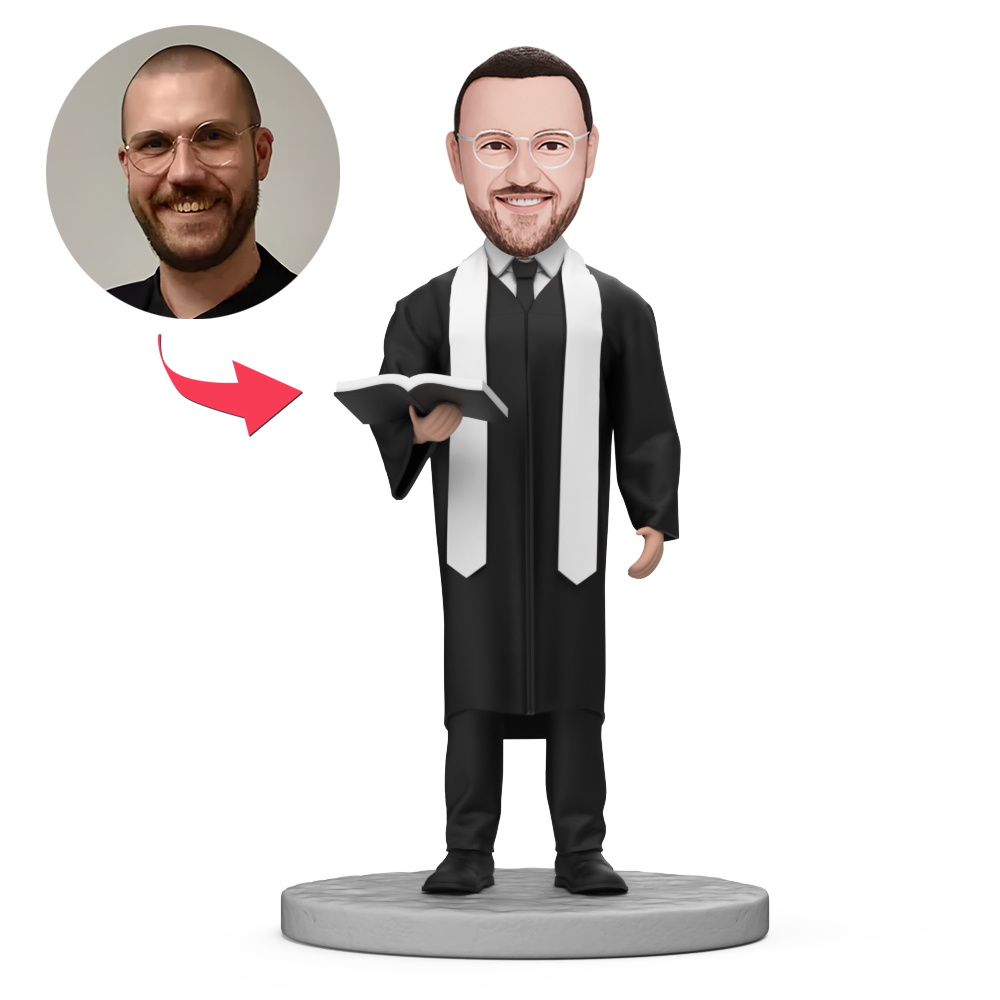 Custom Pastor Holding a Bible Custom Bobblehead With Engraved Text Gift