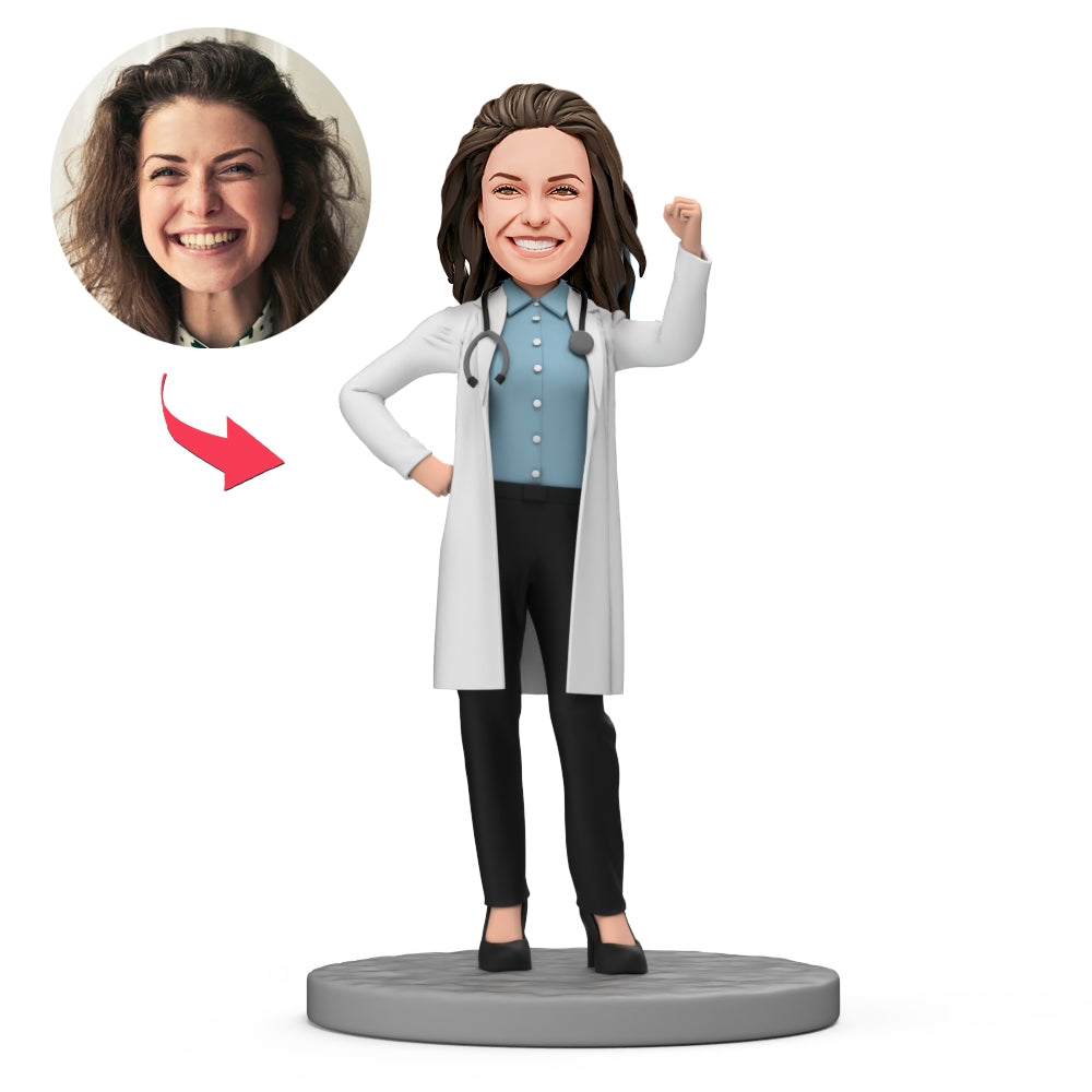 Female Doctor with Stethoscope Custom Bobblehead with Engraved Text