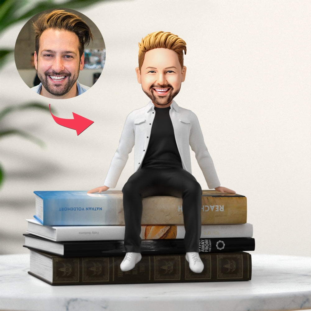 Casual Man in White Coat Custom Bobbleheads Gifts For Young Friends