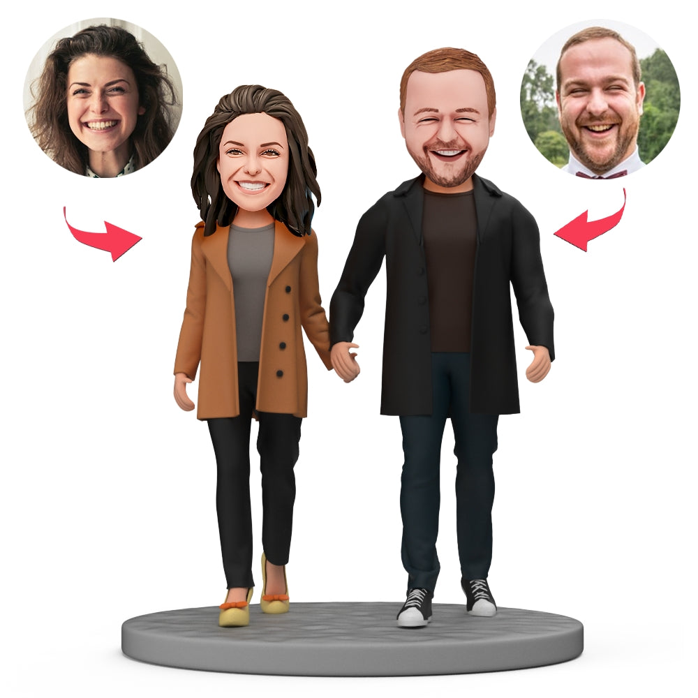 Custom Bobble Head Couple Wearing Fashionable Autumn Clothes