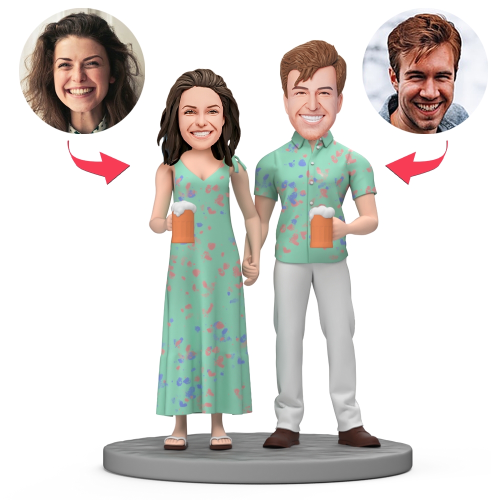 Couple Hold Beer in Hand Custom Bobblehead with Engraved Text