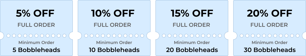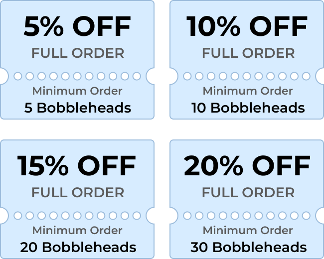 Please contact us for coupon discount code. Customer service email: cs@myfacebobbleheads.com