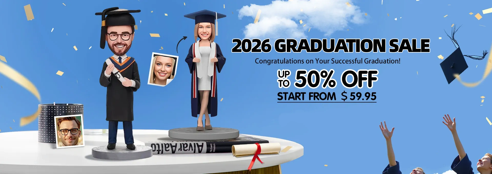 Fully Body Customizable graduation 1 Person Custom Bobbleheads With Engraved Text -