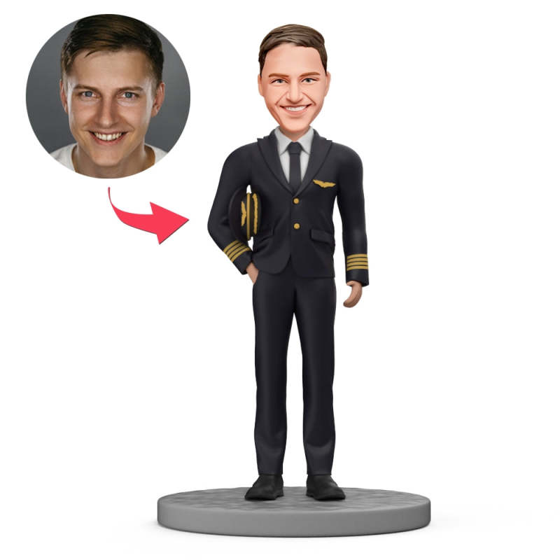 Attractive Aviator Custom Bobblehead in Aircraft Pilot/Captain Suit Uniform
