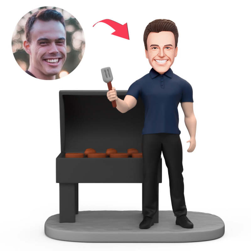 BBQ Male Wear Black T-shirt Custom Bobblehead with Engraved Text