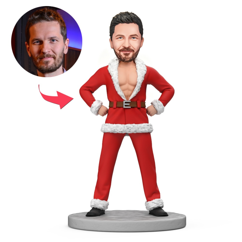 Charming Muscular Man in Christmas Costume Custom Bobbleheads With Engraved Text Gift for Christmas
