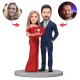 Couple Holding Red Hearts With Messages Of Love Custom Bobblehead With Engraved Text Gift for Valentine's Day