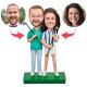 Couple Playing Golf Custom Bobblehead with Engraved Text