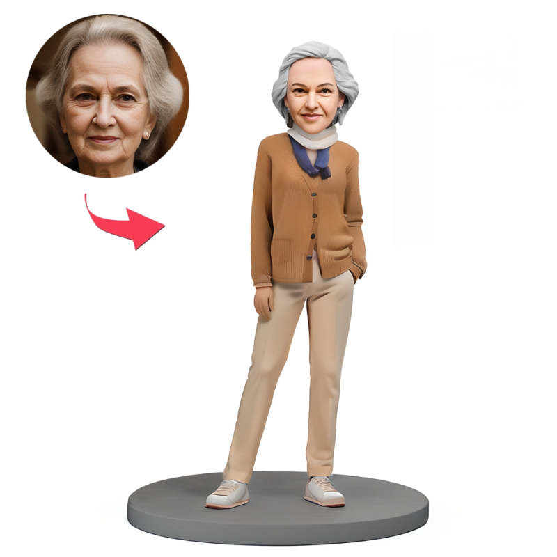Custom Bobblehead Fashionable Tall Elderly Woman With Text