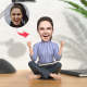 Custom Bobblehead Girl in Striped Shirt Celebrating While Sitting Cross-legged Gift For Her
