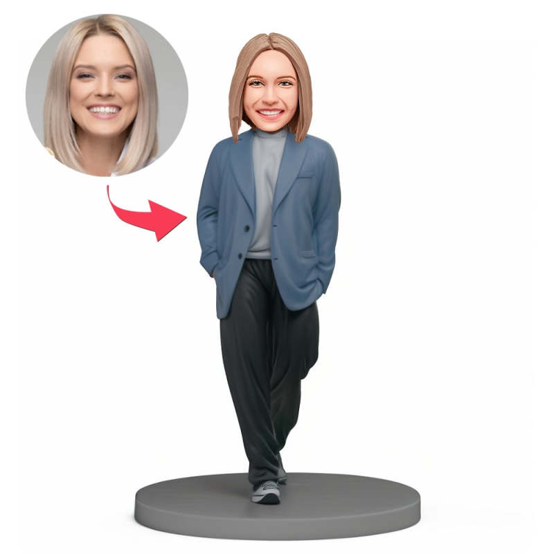 Custom Bobblehead Handsome Lady in Gray Casual Suit