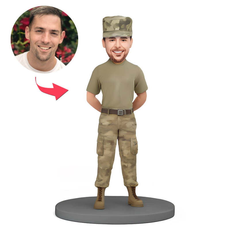 Custom Bobblehead Soldier in Military Uniform Standing With Hands Behind His Back