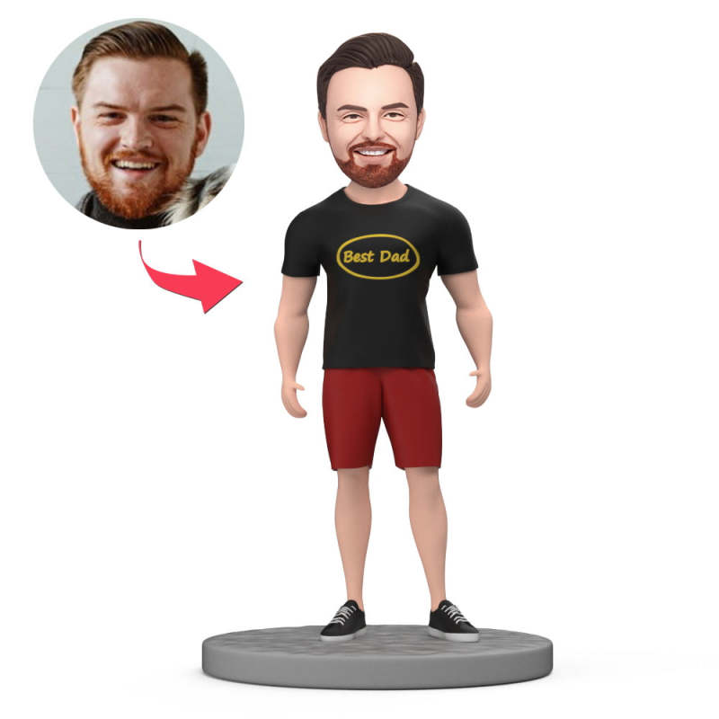 Custom Bobbleheads Male in Casual Wear Best Dad with Engraved Text
