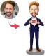 Custom Business Blue Suit Super Dad Superhero Bobbleheads With Engraved Text
