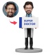 Custom Male Doctor Holding up a Super Doctor Sign Personal Business Card Display Custom Bobblehead With Engraved Text Gift