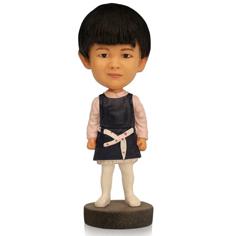 Cute Girl With Dark Blue Skirt Custom Bobblehead With Engraved Text