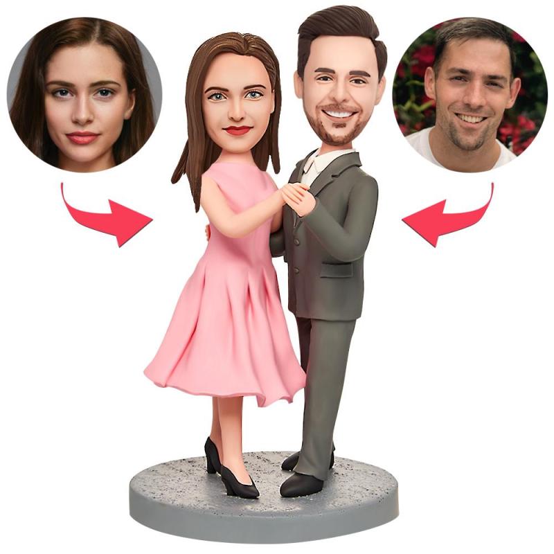 Dancing Couple in Pink Dresses and Black Suits Custom Bobblehead with Engraved Text