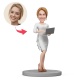 Female Modern Wear White Dress Hold Laptop Custom Bobblehead with Engraved Text
